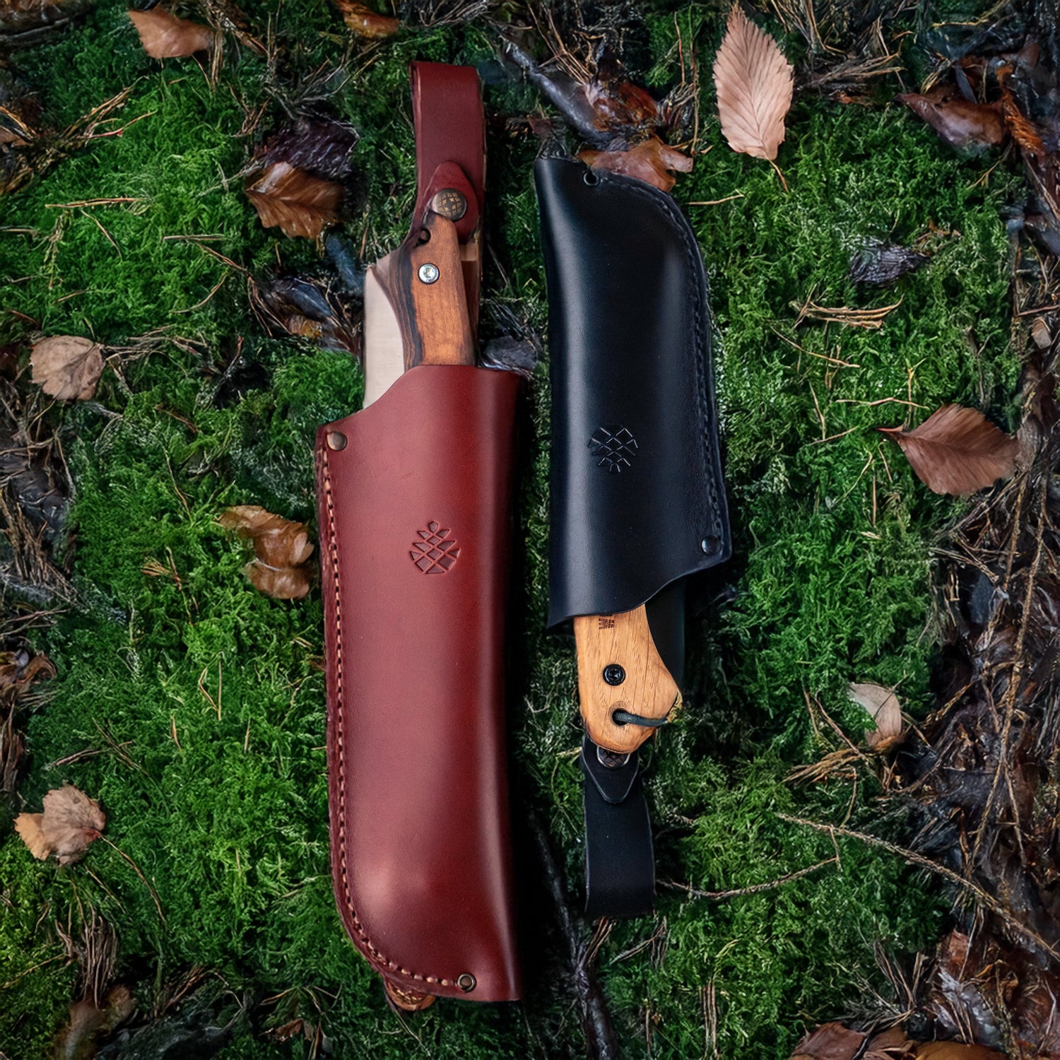 The sheaths are made in Europe from thick, durable, vegetable-tanned leather.