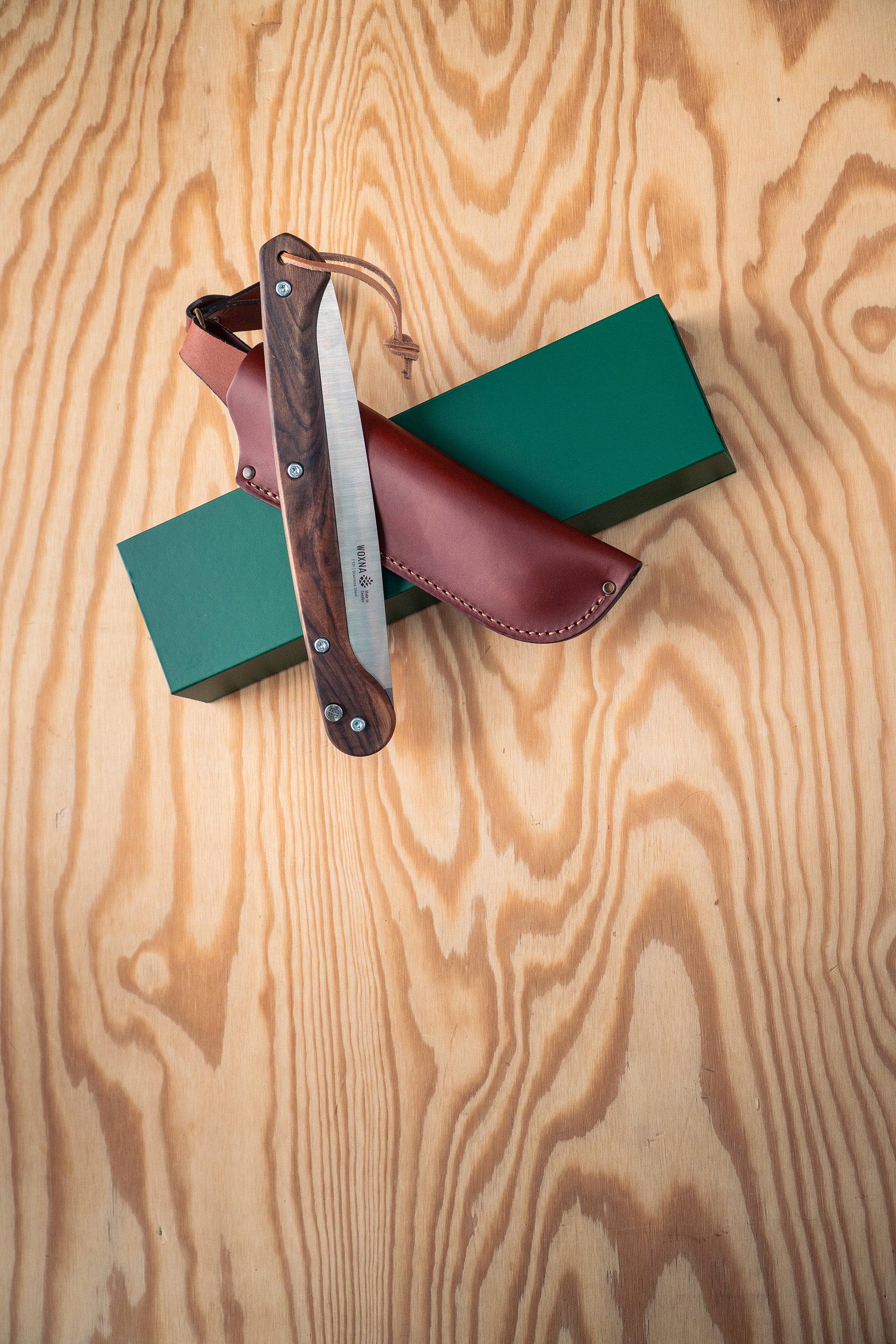 This set combines the Ljusnan 250 mm / 10″ stainless-steel saw with walnut handle, with the Alfta cognac leather sheath, purpose-built to fit perfectly together.